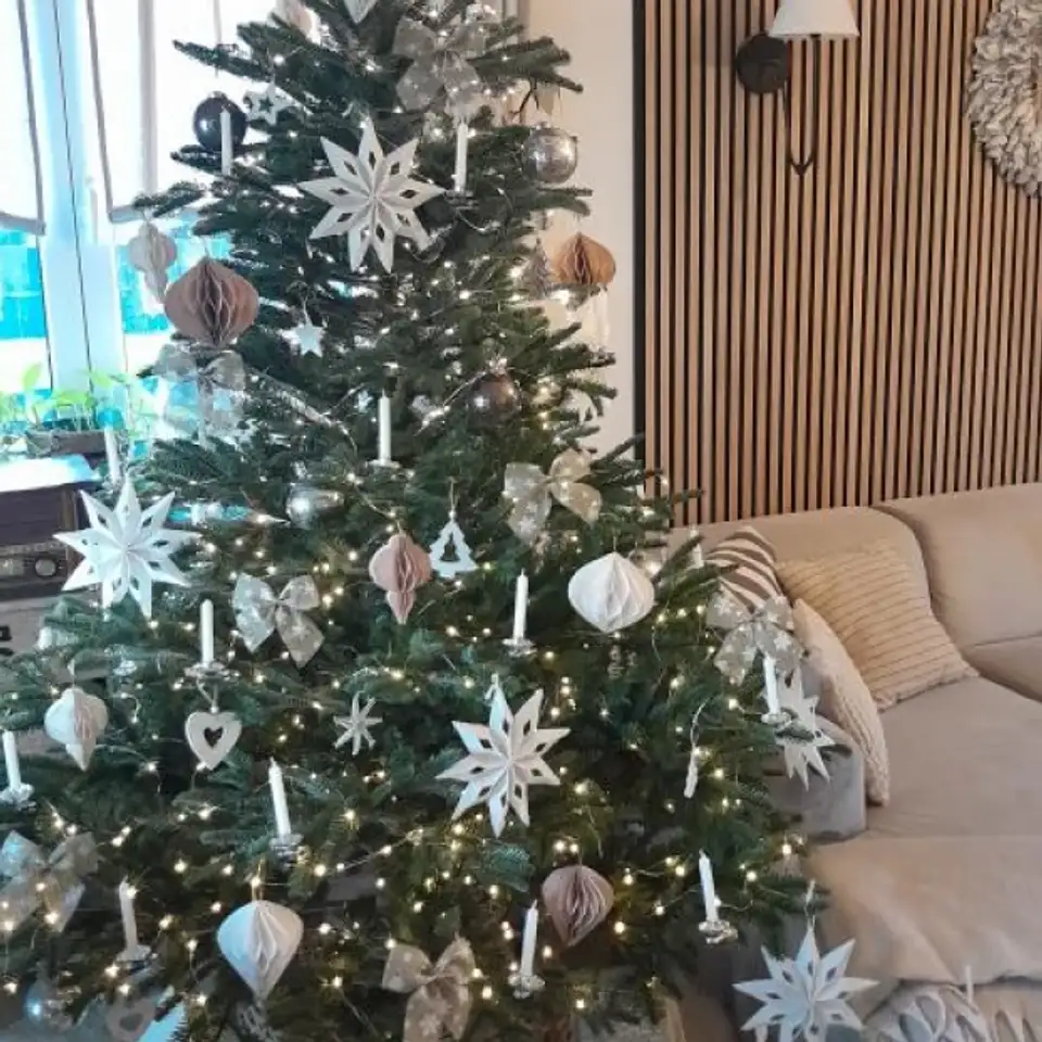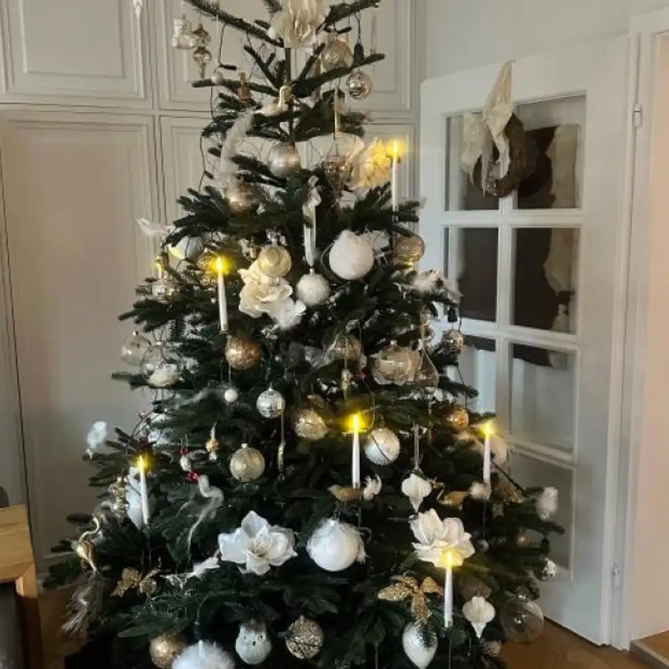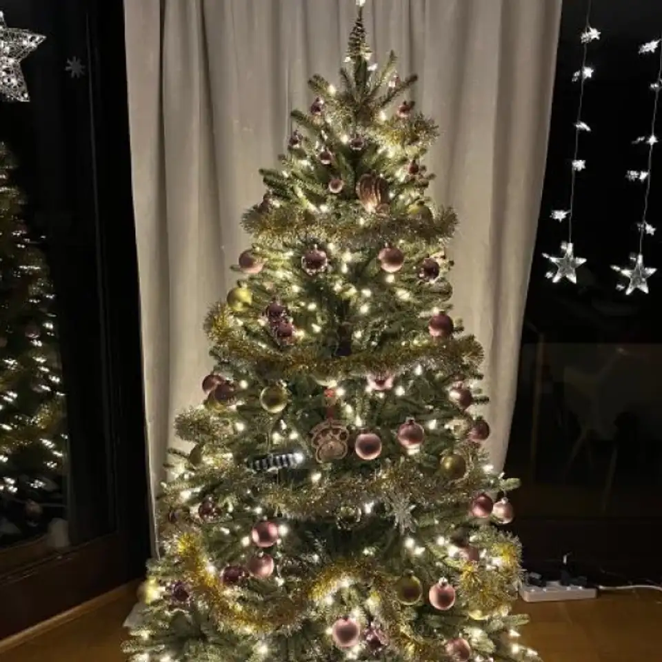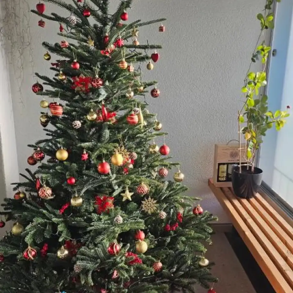 Den Baum haben wir im Januar mir Rabatt gekauft und am liebsten würden wir ihn noch ein wenig stehen lassen :-). Wir sind super happy, dass wir uns für diesen Baum entschieden haben - eigentlich wollten wir nie einen künstlichen. Anfangs mussten wir uns ein wenig an die schmale Form gewöhnen, aber so passt er perfekt in die Ecke, wo er stehen soll. Schon beim Auspacken hat man die tolle Qualität gesehen, der Stamm und die Zweige sehen super realistisch aus. Der Aufbau war wirklich easy und wir mussten nur wenig auflockern. Er sieht bei uns nicht so dicht wie auf den Bildern aus, aber mögen dass der Stamm an einigen Stellen durchscheint. Das lässt ihn aus unserer Sicht natürlicher wirken. Die Lichter haben eine tolle Farbe, nicht zu weiß, nicht zu gelb. Für meinen Geschmack könnten sie etwas weniger hell sein. Ein Dimmer wäre ideal, ebenso ein An-Aus-Schalter. Sonst ist alles top.